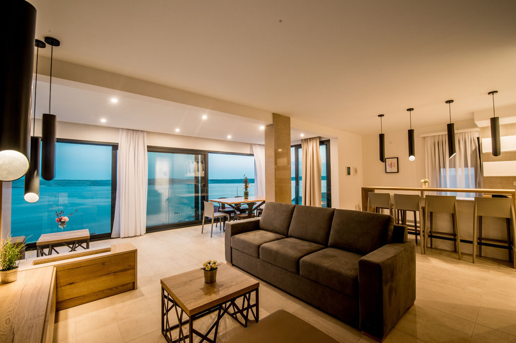 Obližnja plaža udaljena je svega 200 m, a pogled na more imate bez obzira za koju smještajnu jedinicu se odlučite. Svaki apartman se sastoji od dnevnog boravka, kuhinje, 2 kupaonice i 4 spavaće sobe, od kojih jedna ima king size, a ostale queen size krevet. Tu su i po 2 parkirna mjesta te pristup liftu kako bi svi sadržaji bili pristupačni osobama s invaliditetom.